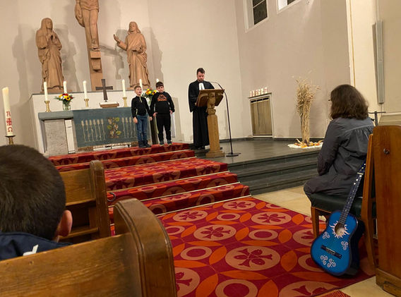 Am 7. November 2024 fand der erste Schulgottesdienst für die Religionskinder der E- und F-Klassen statt. Um 8 Uhr machten sie sich auf den Weg zur Pauluskirche in Wehringhausen, wo Pfarrer Simon Hillebrecht sie freundlich begrüßte. Nach dem Begrüßungslied „Einfach spitze, dass du da bist“ ging es um das Thema Engel. Zwei Kinder lasen Fürbitten vor, und am Ende bekam jedes Kind einen Schlüsselanhänger mit einem Schutzengel. Zurück in der Schule waren sich alle einig, dass dies ein schöner Gottesdienst war!